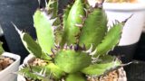 購入時のタグには「アガベ・笹の雪コンパクタ」とありましたが、笹の雪の矮性種(わいせいしゅ=小さく品種改良したもの)とのことで「笹の雪コンパクタ=姫笹の雪」のようですね。ちなみに姫笹の雪は日本人がはじめて改良したようです。